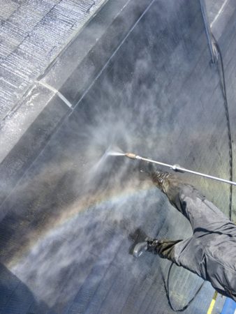 仮設足場の設置から、高圧洗浄の様子を写真にて載せます。