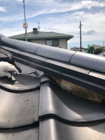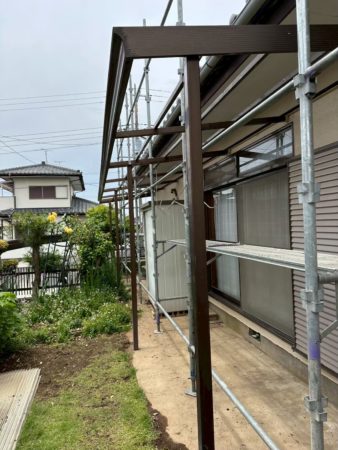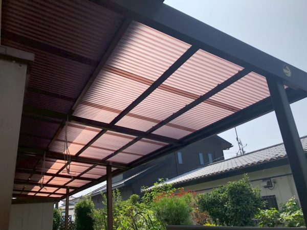 今回の工事では、塗り替え工事の他に、軒天井の上張り、雨樋の交換、テラス波板の交換、瓦屋根の漆喰工事、濡れ縁の補修工事と様々な職人さんが手を掛けさせていただきました。