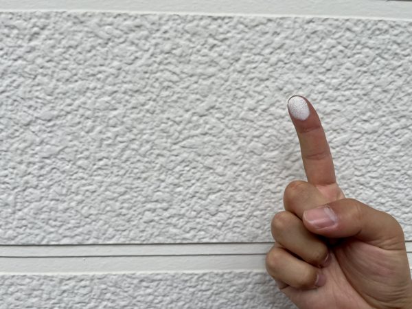 外壁を触ると手に白い粉がつくのは、塗料の劣化が進んでいるサイン(チョーキング現象)です。早めの塗り替えが、大切な住まいを守ります。